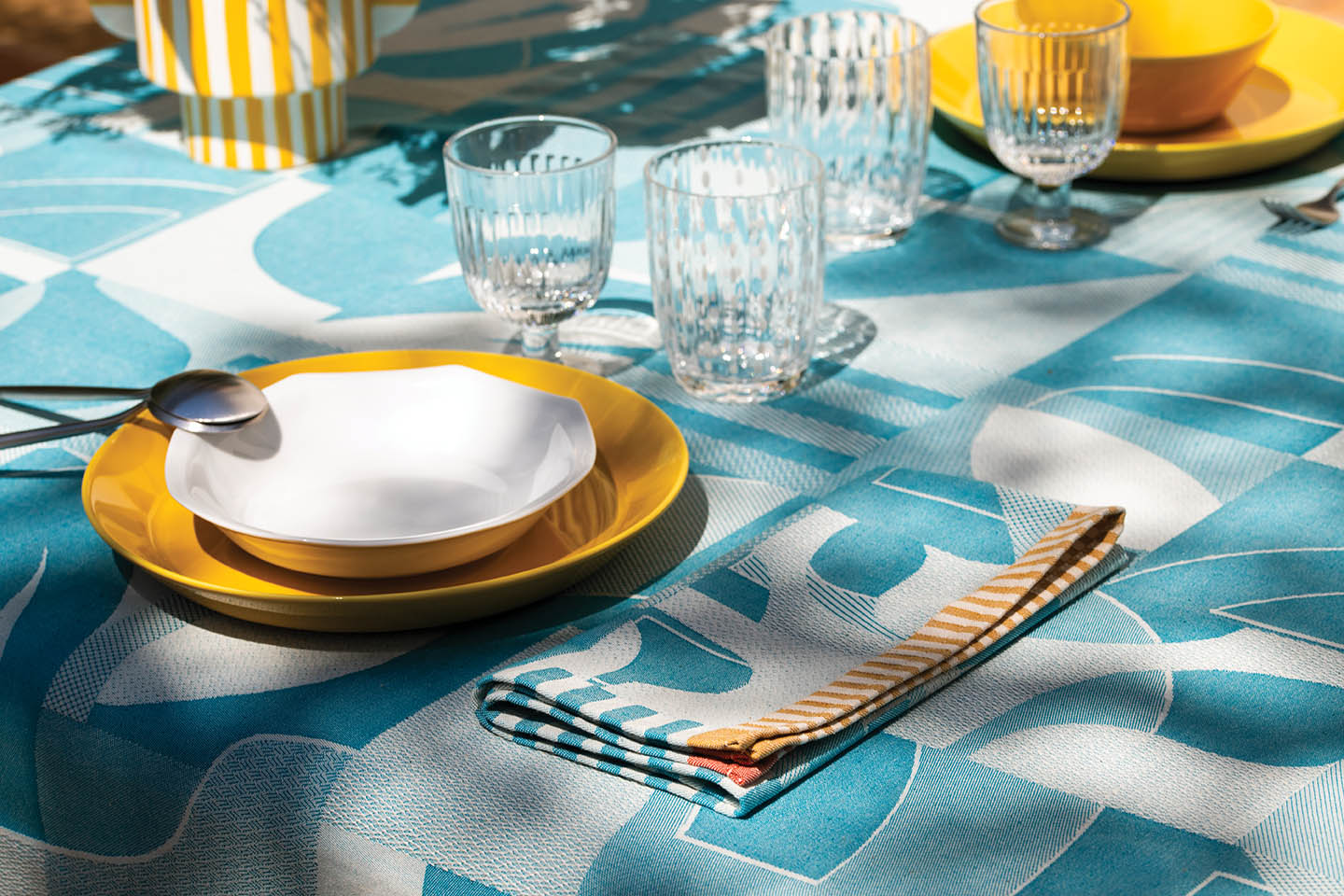 Tissage Moutet x Laure Vissian – Studio La Fabrique présentent la nappe Cubik, complice d’un doux été indien.