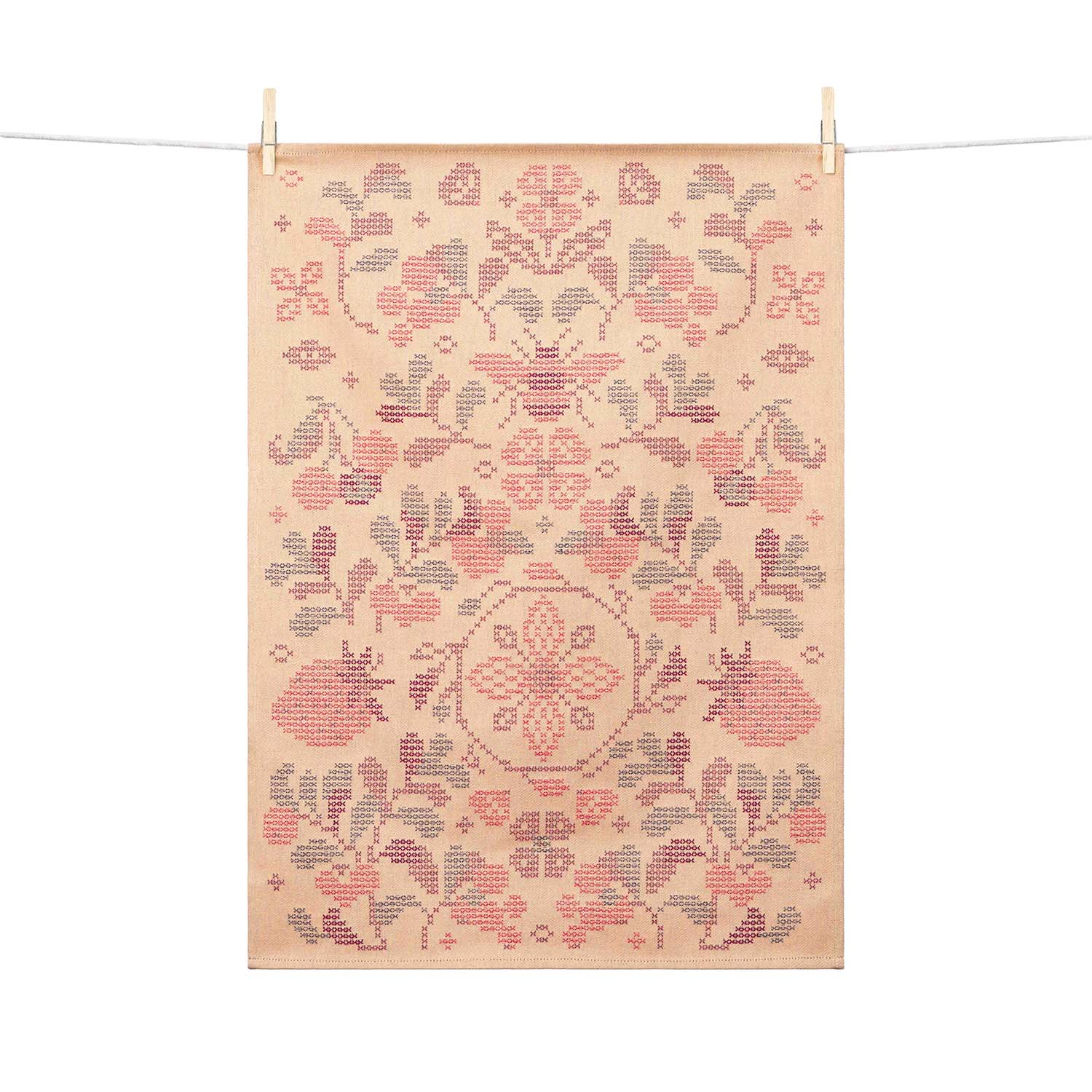 Le torchon traditionnel se réinvente avec « Fraisier » signé de la designer textile Lise M., clin d’œil virtuose au point de croix revisité.
